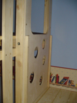 A mászópanelre olyan kivehető takarópanelt helyezünk el, mely megakadályozza, hogy a gyerek beleléphessen a körkivágott fokokba.
